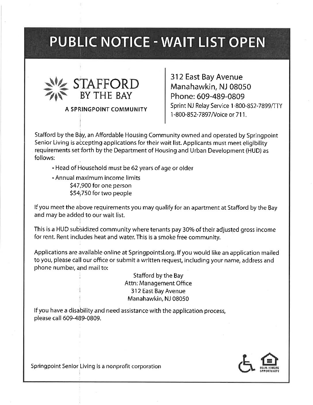 Housing Opportunities Preliminary Application Housing Unit Pt Pleasant Ocean County NJ Click Here Click Here for an Application Manitou Park